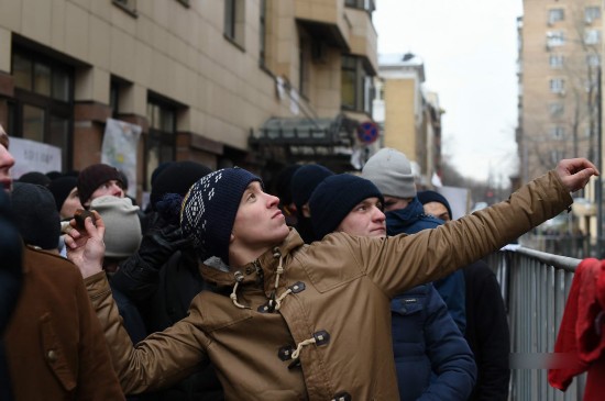 A Russian man throw stone at Turkish Embassy to Russia in Moscow on November 25, 2015, to protest against Turkey's shooting down of Russian jet.
