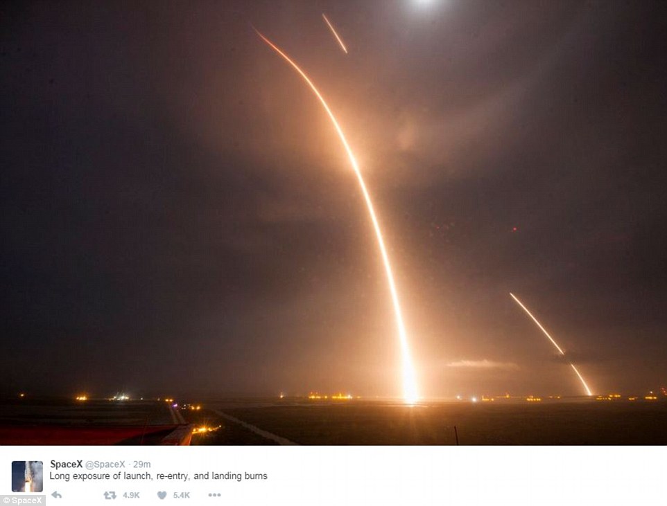 'The Falcon first stage landing is confirmed,' SpaceX wrote on Twitter. 'All 11 ORBCOMM satellites have been deployed in nominal orbits'