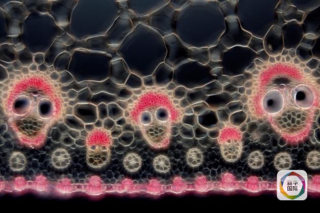These skull-shaped objects are actually a vital part of the papyrus plant -- cyperus papyrus imaged at 200 times life size. The plants use these vascular bundles to transport fluids through their tissues.