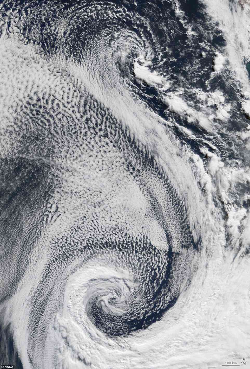 'S': On April 29, 2009, the Moderate Resolution Imaging Spectroradiometer (MODIS) on the Terra satellite acquired this image of clouds swirling over the Atlantic Ocean (pictured)