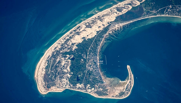 Photo presents the northern tip of Cape Cod. In terms of geological age, Cape Cod is young, having been laid down about 20,000 years ago by glaciers when these were at their fullest extent. (Photo/NASA)