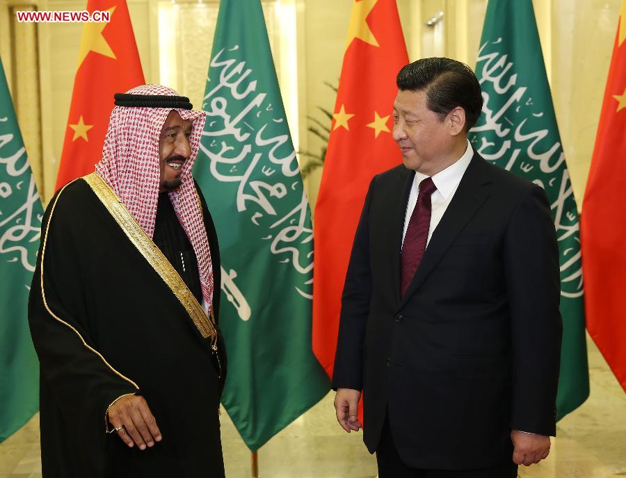 Chinese President Xi Jinping (R) meets with Saudi Arabia Crown Prince Salman Bin Abdulaziz Al Saud, who is also the deputy premier and minister of defense, in Beijing, capital of China, March 13, 2014. [File Photo: Xinhua/Pang Xinglei]