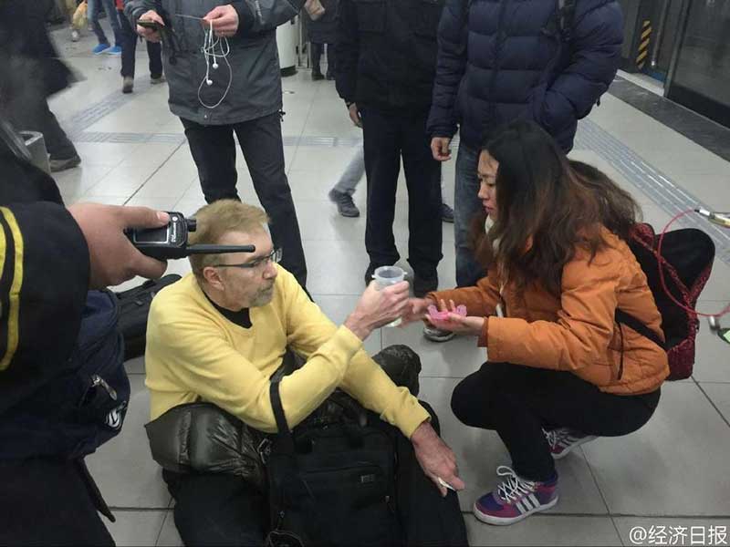 Passengers lend helping hand to foreigner who faints in Beijing subway (6)