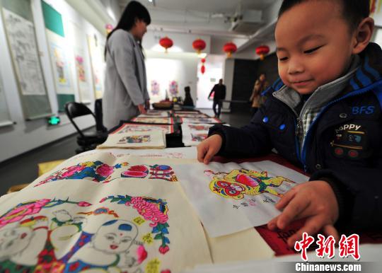 Xu Xiaoyi is a 35-year-old artist of New Year paintings in Wuqiang county, northern China's Hebei province. In the 'Folk Fine Arts Exhibition' held in the Zhengjue Gallery of Hebei province, Xu displayed his New Year paintings and presented the production techniques.