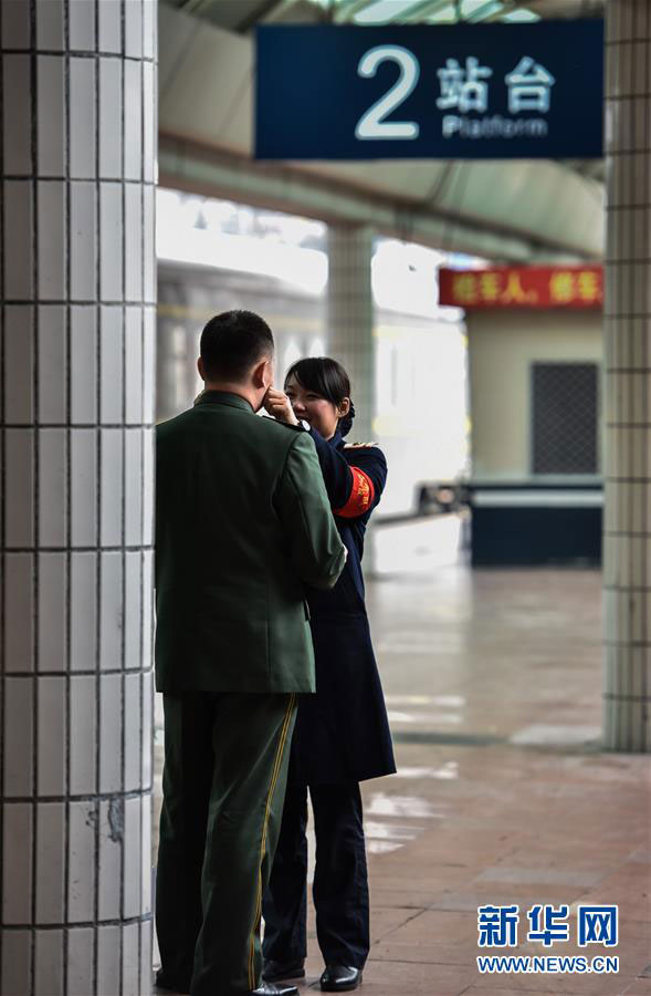 The couple talks to each other before saying goodbye at a train station in south China's Guangdong Province on Feb. 3, 2016. [Photo: Xinhua]