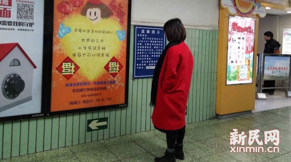 An anti-forced marriage advertisement has been posted at the subway station of Dongzhimen in Beijing.
