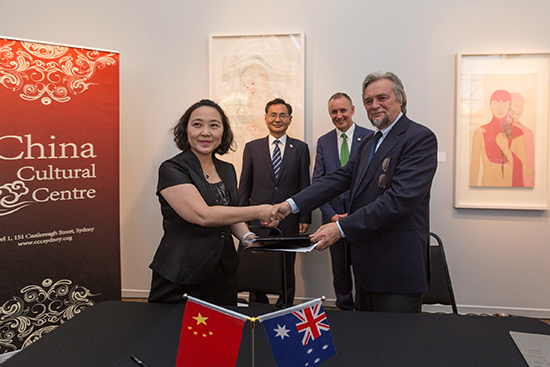 SYDNEY, Feb. 7 (People’s Daily Online) -- On Feb 5, 2016, China Culture Centre in Sydney signed a cooperation agreement with Adelaide Festival Centre in Adelaide. Zhao Li, Director of China Culture Center in Sydney and Douglas Gautier, CEO of Adelaide Festival Center signed a memorandum of understanding, witnessed by Rao Hongwei, Chinese Consular General in Adelaie and Jay Weatherill, Premier of South Australia. This cooperation will bring more Chinese visual arts and performances to Adelaide, South Australia.