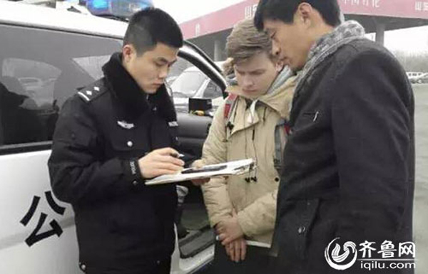 At 1:30 p.m. on Feb. 12, 2016, the public security bureau of Yucheng received a report that a foreign man was trapped in the Yucheng service area of the Beijing Taipei Expressway and needed help. Du Xingbao, a policeman who was on duty quickly went to the site.