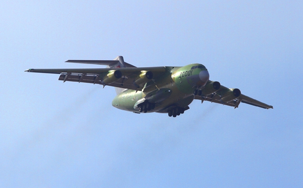 The first flight of the Y-20 took place in 2013, making China the fourth country in the world, following the U.S., Russia and Ukraine, to develop a 200-ton military cargo jet.
