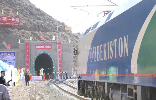 A ribbon-cutting ceremony was held at the exit of the Qamchiq Tunnel in northeast Uzbekistan on Feb. 27. China Railway Tunnel Group has finished construction of the Qamchiq Tunnel, the longest in Central Asia, on the Angren–Pap railway line in Uzbekistan.