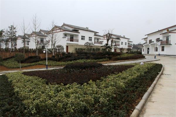Pictured is a landscaping feature at aresettlement estate, which is part of the local government’s poverty reduction project, in Fangxian county, Central China’s Hubei Province on February 23. Altogether 7,528 people in 1,882 households moved into the newly-built ecological community. (People's Daily/Zhang Qilong and Liu Feng)