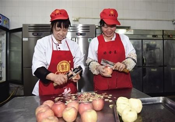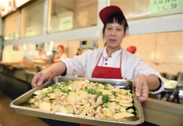 "Cooked apples with chicken is the cuisine of northern China. We made it in our kitchen to neutralize the greasiness that students feel after eating too much meat and fish during Spring Festival," said Peng Zhongfu, the 62-year-old chef at the university.