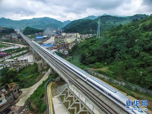 The Guiyang to Xinhuang section of Kunming-Shanghai high speed rail is put into operation in 2015. (Photo/Xinhua)