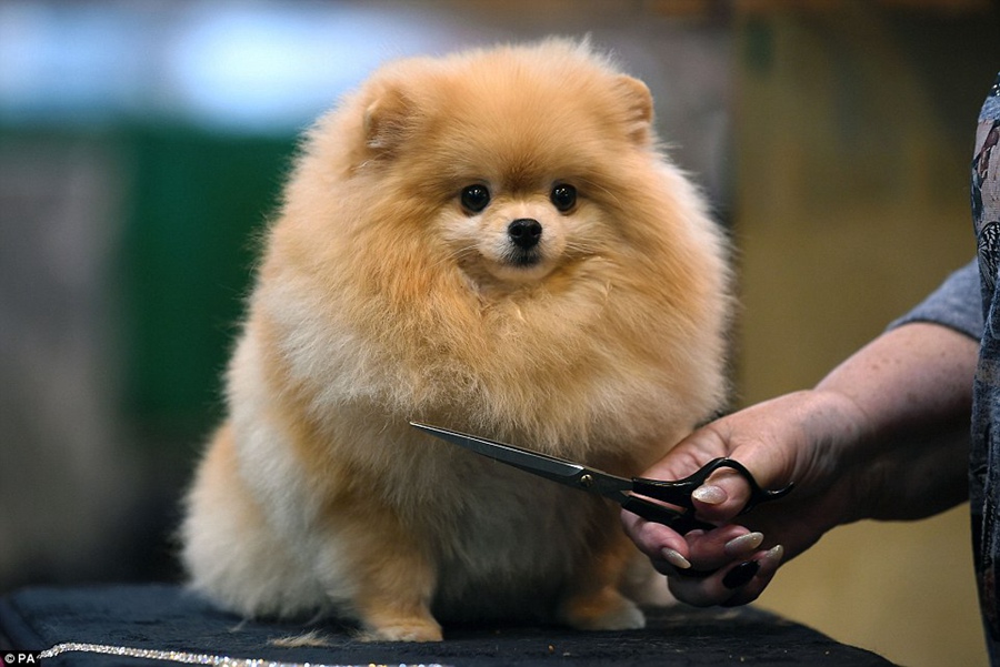 A Pomeranian named Pepper during day one of the four day event, which attracts entrants from almost 50 countries
