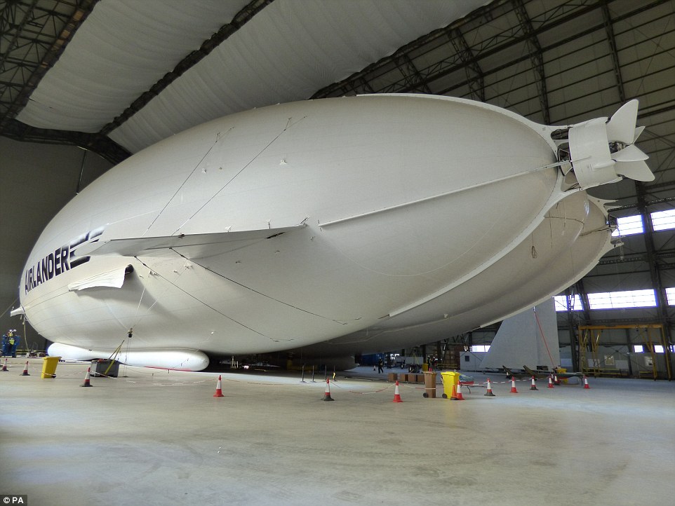 The first giant fin was attached to the ship, officially called the 'Airlander 10', last month according to Hybrid Air Vehicles who is constructing the aircraft, and now the remaining fin and parts have been attached.
