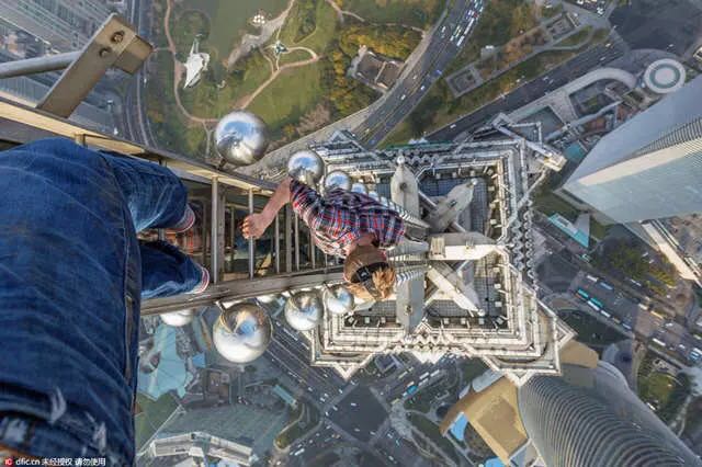 Three young foreigners detained after climbing up to the 88-story JinMao Tower in Shanghai on Friday. The Jin Mao Tower is an 88-story landmark skyscraper in Lujiazui, Pudong, Shanghai, China. It is 420.5 meters tall and is the 18th tallest building in the world.