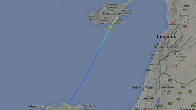 After leaving Alexandria (bottom left), the plane was diverted from it's route to Cairo.