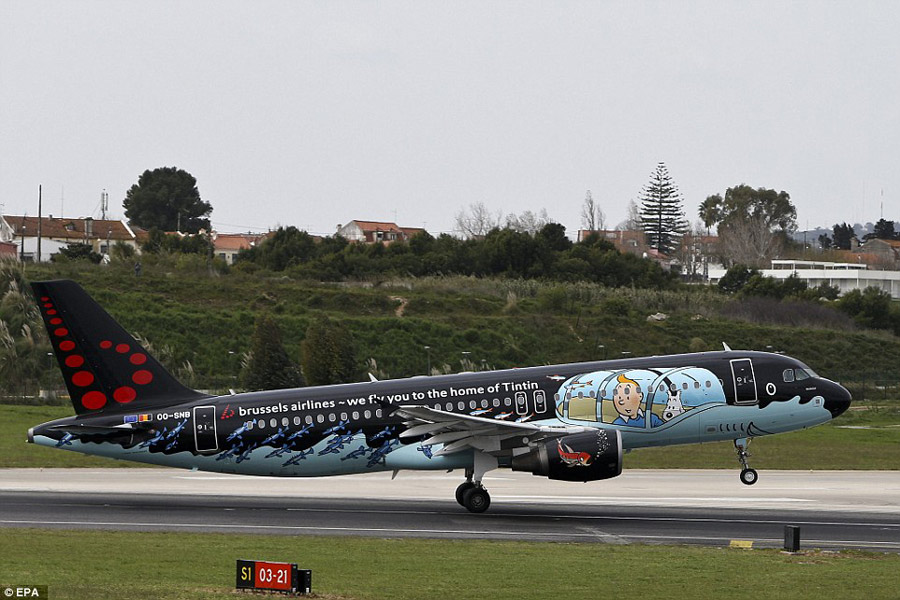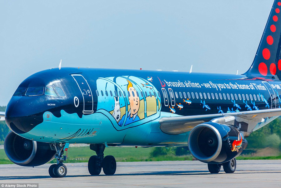 This Airbus A320 called Rackham, from Brussels Airlines, celebrates The Adventures of Tintin, created by Belgian cartoonist Herge.