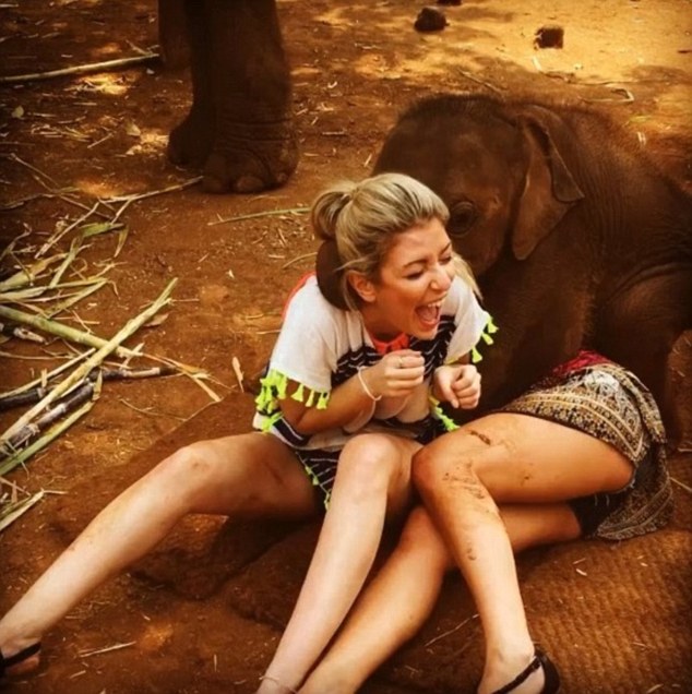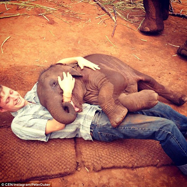 Images of the encounters between Nampuu and unwitting tourists show visitors screaming in delight as the cheeky calf climbs on top of them, falls between their arms and wraps his trunk around their heads.