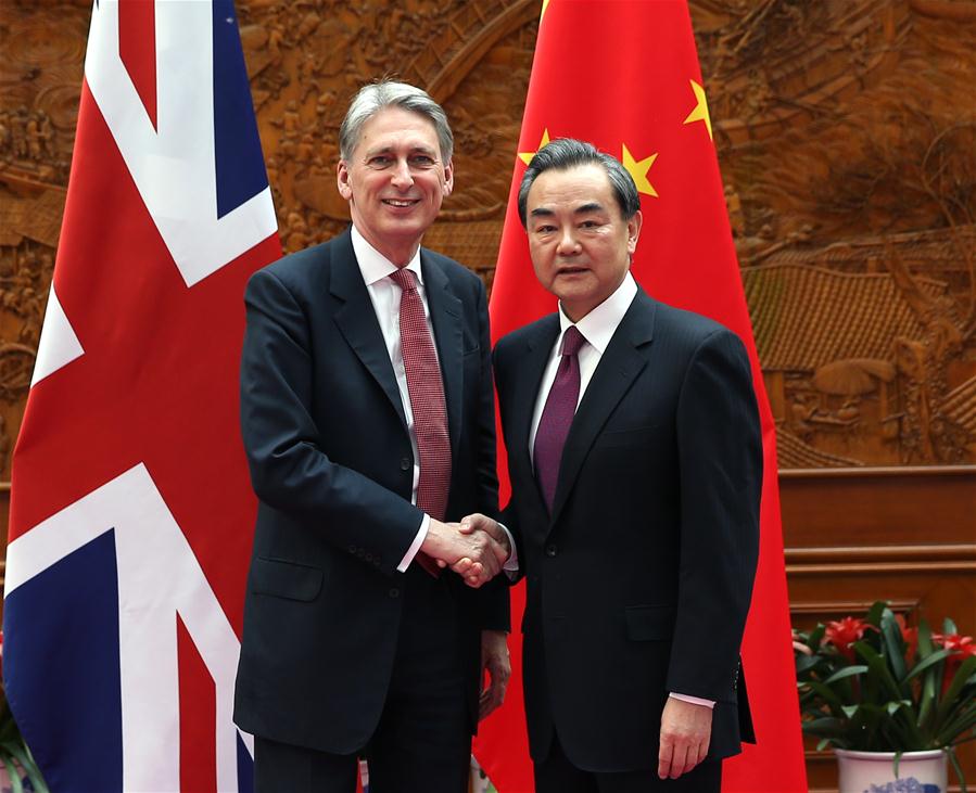 Wang and Hammond also exchanged views on the Korean Peninsula nuclear issue and the political settlement process in Syria.
