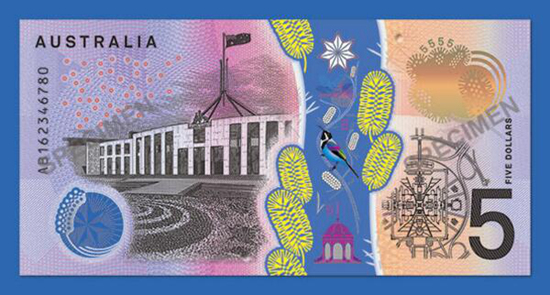 Reserve Bank of Australia reveals the new AU$5 banknote (Source: RBA)