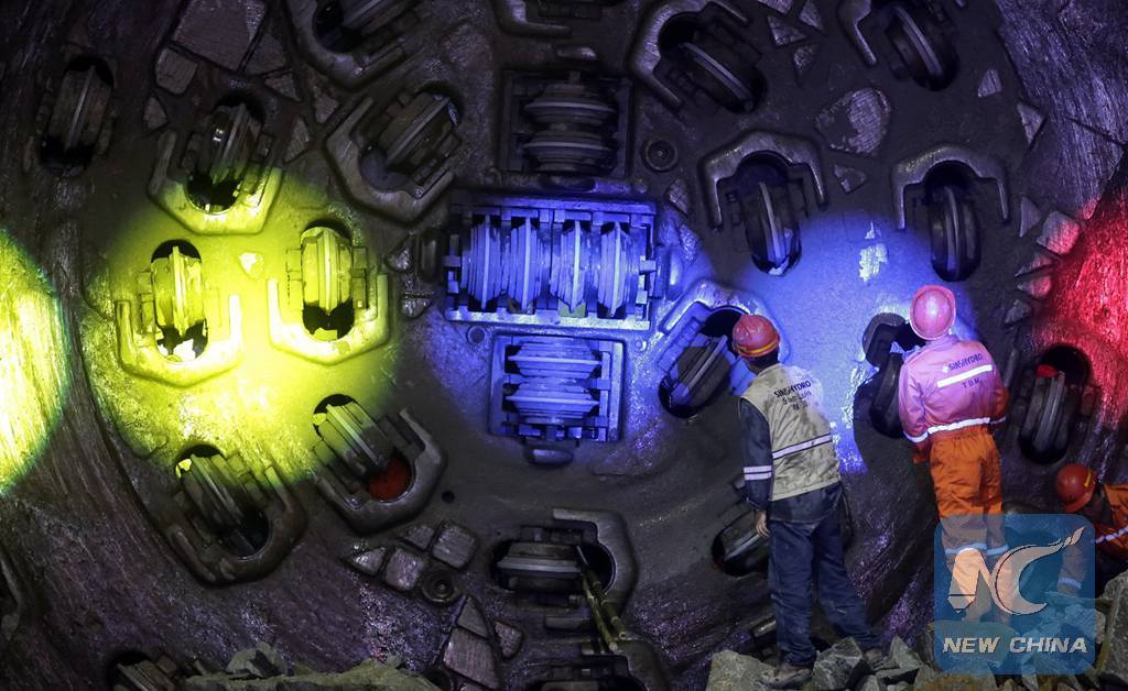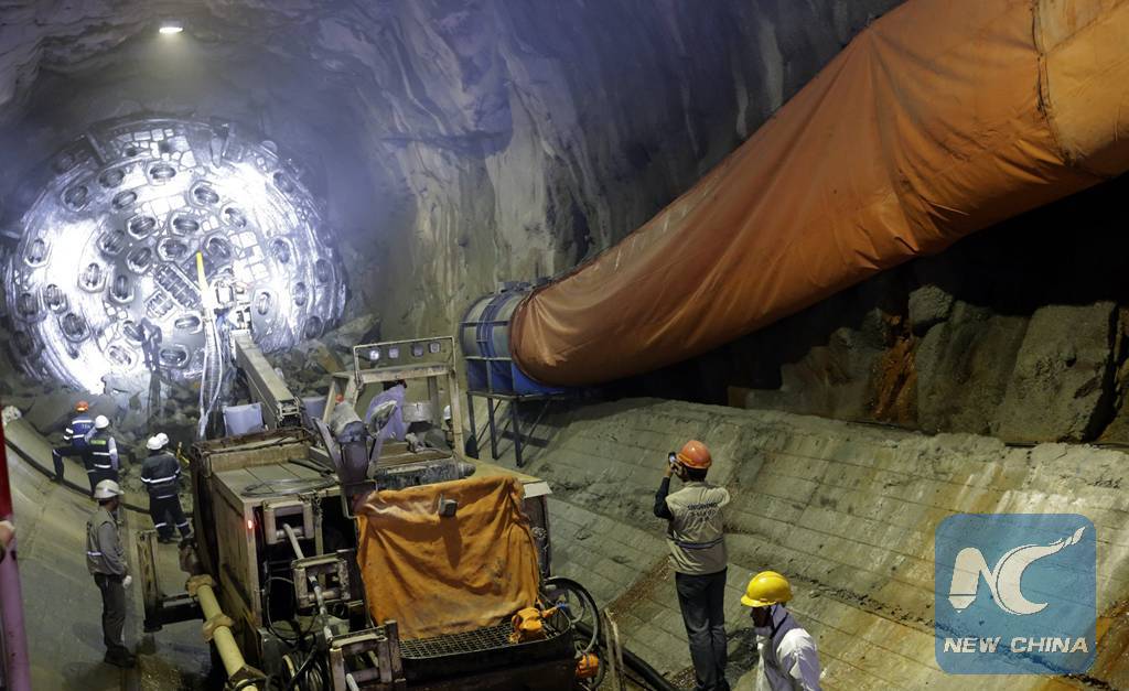 Employees work in one of the tunnels of the Coca Codo Sinclair hydroelectric project, in El Chaco, Napo province, Ecuador, April 7, 2015. The Chinese Sinohydro Corporation completed on Tuesday the stage of conduction of the Coca Codo Sinclair hydroelectric project, the biggest hydroelectric power station in the Amazon of Ecuador.