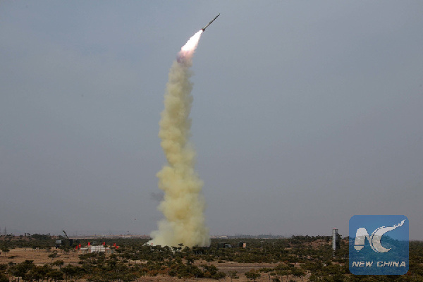 Photo provided by Korean Central News Agency (KCNA) on April 2, 2016 shows the test site of new-type anti-air guided rockets in the Democratic People's Republic of Korea (DPRK). (Xinhua/KCNA)