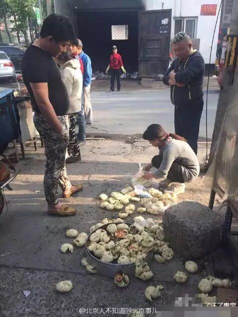 An angry man was seen shoving down the buns from a street vendor and crushing them with his feet in Beijing on Thursday, only because the vendor mistakenly gave him the wrong flavor of buns.