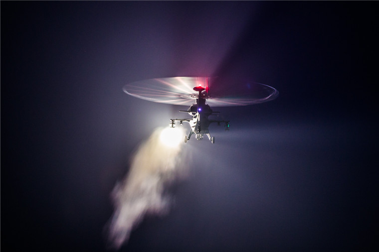 A WZ-10 attack helicopter fires a missile at night during live-fire training on April 22, 2016. An Army aviation brigade with the PLA 1st Group Army conducted round-the-clock live-fire training in the north of east China’s Jiangsu Province on April 22, 2016. (ChinaMil/Wang Jiayin)