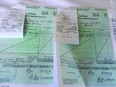 The tax bill issued by the German customs posted by the Chinese passenger. (Photo from Weibo)