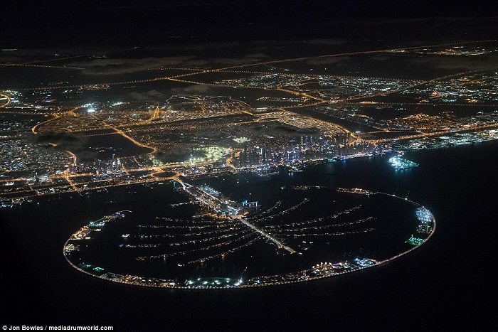 Captain Jon Bowles, 55, has travelled the equivalent of ten round trips to the moon. Taken from the flight deck, the stunning photos show some of the most recognizable places in the world from an-above earthly perspective, including Dubai, Bangkok, Tokyo and New York.