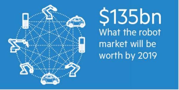 Market research company IDC predicts in its Worldwide Commercial Robotics Spending Guide that the compound annual growth rate of the robotics industry will be 17 percent, and that the industry will reach a net worth of 135.4 billion dollars by 2019. The robotics industry boom is taking place mainly in Asia, with China and Japan responsible for 69 percent of total consumption on robots.