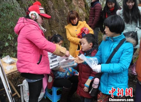 A tourist is rewarded for collecting rubbish. (Photo/Chinanews.com)