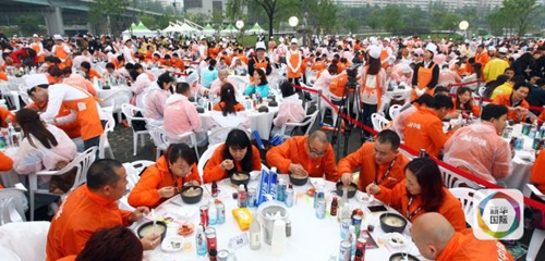 On May 7, 2016, 400 tables were set up in Banpo Hangang Park in Seoul to treat 4,000 tourists from China with the traditional Korean cuisine ginseng chicken soup.