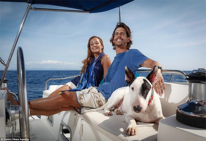The couple claim Feijao has adapted well to sailing life and loves chilling on the deck and at the beach - but is not a keen swimmer, instead preferring paddleboarding.