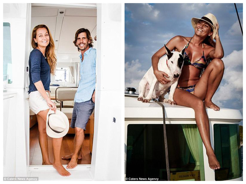 Young couple Sarah Moreira and Renato Matiolli decided to quit the rat race and give up their jobs to sail around the world with their dog, Feijao