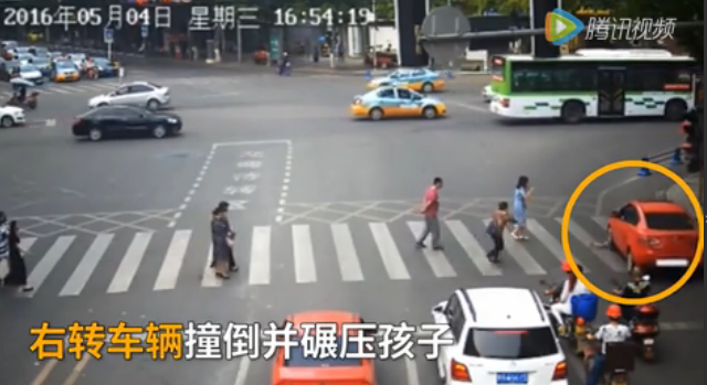 The surveillance video shows the boy letting go of his mother’s hand as they walked together on the crosswalk. The little boy then ran across the street at the very moment that a car began to turn right, knocking the boy to the ground and driving over his chest. The mother rushed up and tried to push the car aside with her body, but the boy independently crawled out from under the car several minutes later.