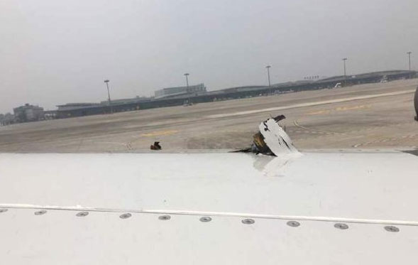 A photo showing the damaged wing of the aircraft which suffers from the landing accident on May 1, 2016. [Photo: newssc.org]