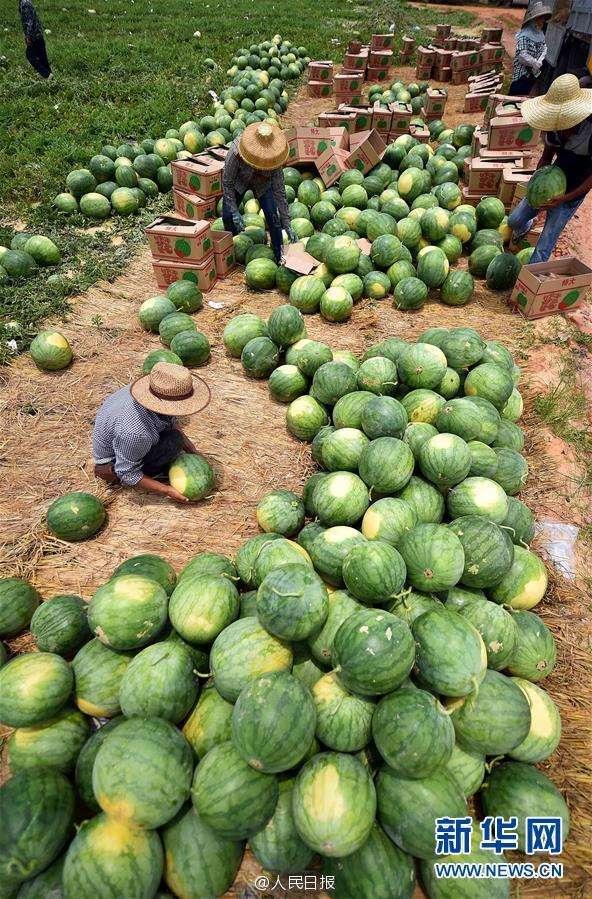 When a reporter from People's Daily Online traveled to Linwu Village on May 24, farmers were busy loading watermelons into trucks, as they finally had enough buyers from other towns and villages.
