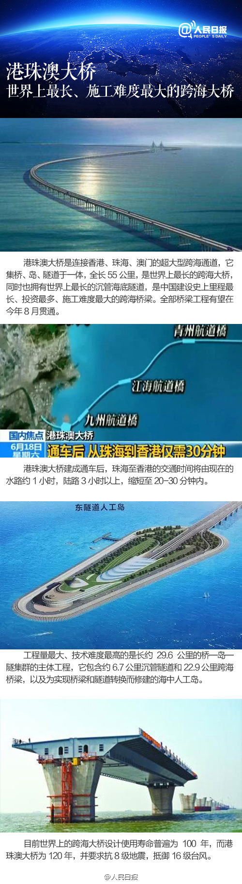 Starting from the Lantau Island in Hong Kong, the Y-shaped bridge will have a total length of about 55 kilometers, including a 6.7-kilometer underwater tunnel and a 23-kilometer bridge over the sea. It will be the longest cross-sea bridge in the world.
