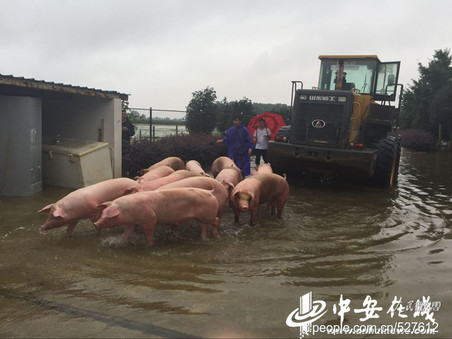 It was reported Tuesday that the owner of a pig farm in Lu'an, Anhui province was mourning the fate of his 6,000 pigs, who were in neck-deep water for nearly 20 hours due to heavy flooding in the region.