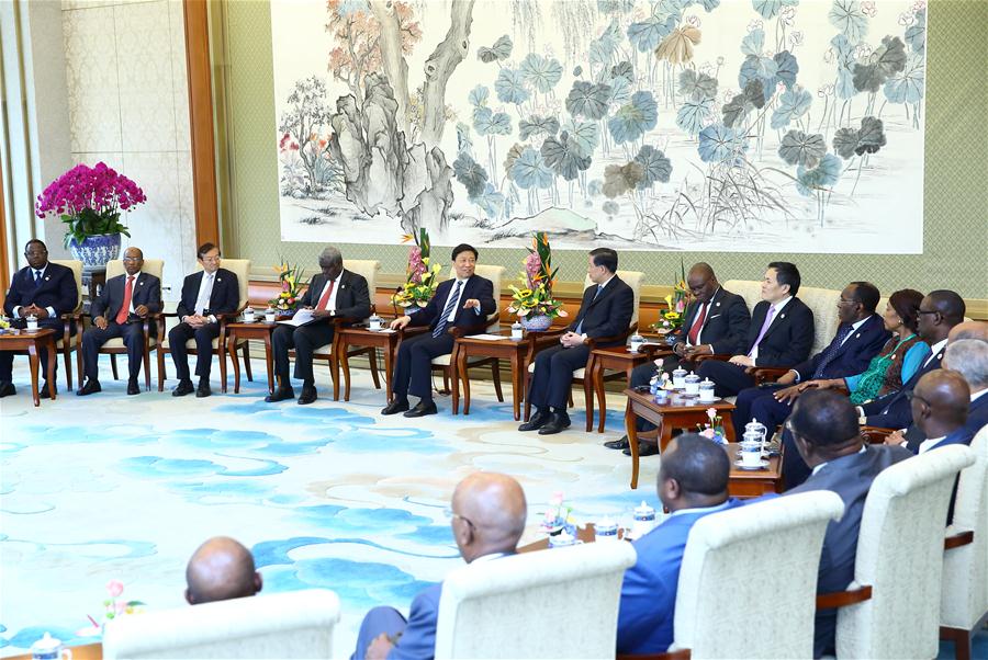 Chinese Vice President Li Yuanchao (5th L back) meets with heads of delegations from Africa attending a Sino-African coordinators' meeting on the implementation of actions resulting from the Forum on China-Africa Cooperation (FOCAC) held in Johannesburg of South Africa in Beijing, capital of China, July 28, 2016. (Xinhua/Ding Haitao)