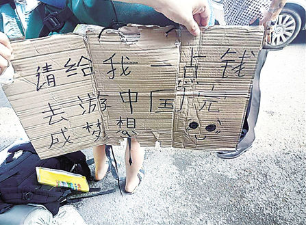Local police provided the three travelers with free accommodations on Sunday night, a breakfast the next morning and 100 yuan. The police offered to drop them off at the train station, but the young people refused and again set out on their journey. They said they planned to go all the way to Guangzhou, and then north to Beijing.