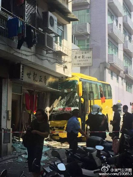 At least 29 tourists from the Chinese mainland were injured and three seriously on Monday when a tour bus crashed into a building in Macao, police said.