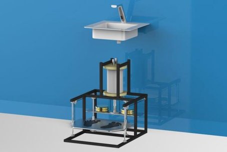 After a year of research and experimentation, the team came up with a gravity-driven hand-washing device whose reliance on water was minimal. The user stands on a platform in front of the device, which sinks because of the weight of the user. The gravity exerted by the user pulls the piston through a pulley block, and a gust of air is generated through air extrusion. The tap then releases a water mist coupled with the gust.