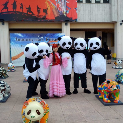 A total of 30 pieces of panda-themed artwork will be presented at the "2016 Experience China" event, launched on Aug. 26 in Alma-Ata, Kazakhstan. Aimed at promoting Chinese culture, the event exhibits important aspects of Chinese heritage such as Sichuan embroidery, bamboo weaving, Chinese calligraphy and tea culture.