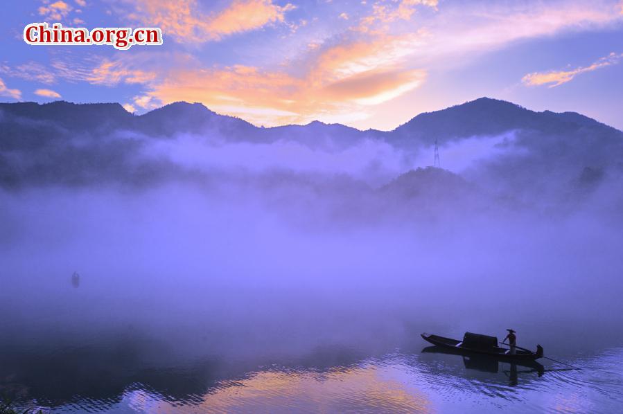 Photo shows the beautiful foggy scenery on the Xiaodongjiang River in Zixing City of central China's Hunan Province. The dreamlike foggy scenery along foggy Xiaodongjiang River from April to October every year attracts a lot of tourists and photographers.(Photo/China.org.cn)