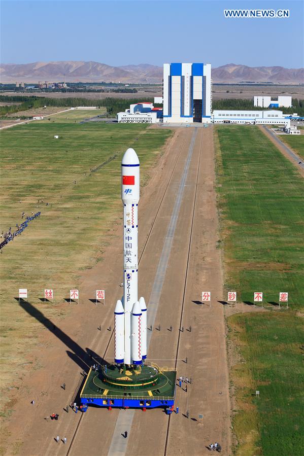 The Tiangong-2 is transferred with its carrier rocket to the launch pad at Jiuquan Satellite Launch Center in Jiuquan, northwest China's Gansu Province, Sept. 9, 2016. China's second space lab Tiangong-2 is scheduled to be put into space between September 15 and 20, according to the office of China's manned space program. (Xinhua/Yang Zhiyuan)
