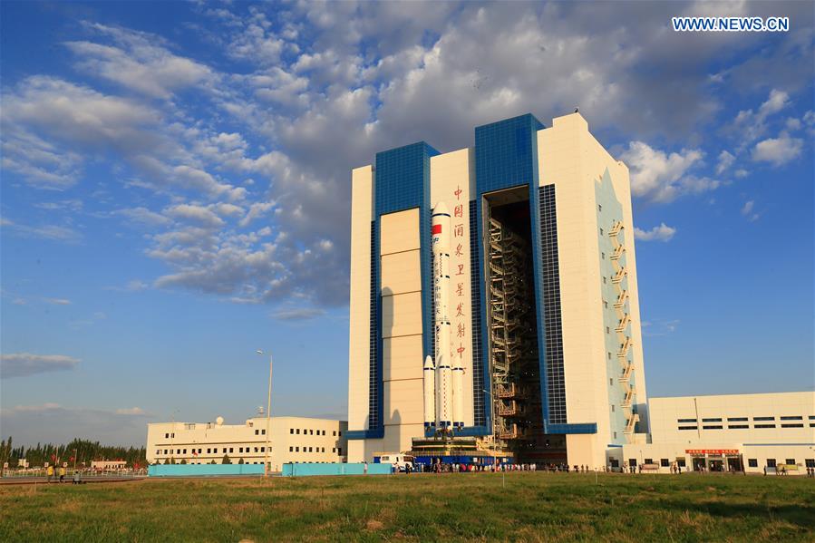 The Tiangong-2 stands with its carrier rocket on the launch pad at Jiuquan Satellite Launch Center in Jiuquan, northwest China's Gansu Province, Sept. 9, 2016. China's second space lab Tiangong-2 is scheduled to be put into space between September 15 and 20, according to the office of China's manned space program. (Xinhua/Yang Zhiyuan)
