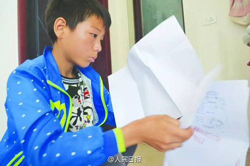 Shi enrolled for his fifth year at Huale Primary School in September 2015. During his two-year absence, Shi kept studying and reviewing what he had learned. He also borrowed textbooks from his cousin. Shi now ranks the first in his class, and he always makes sure to hand in his homework before he leaves for treatment.